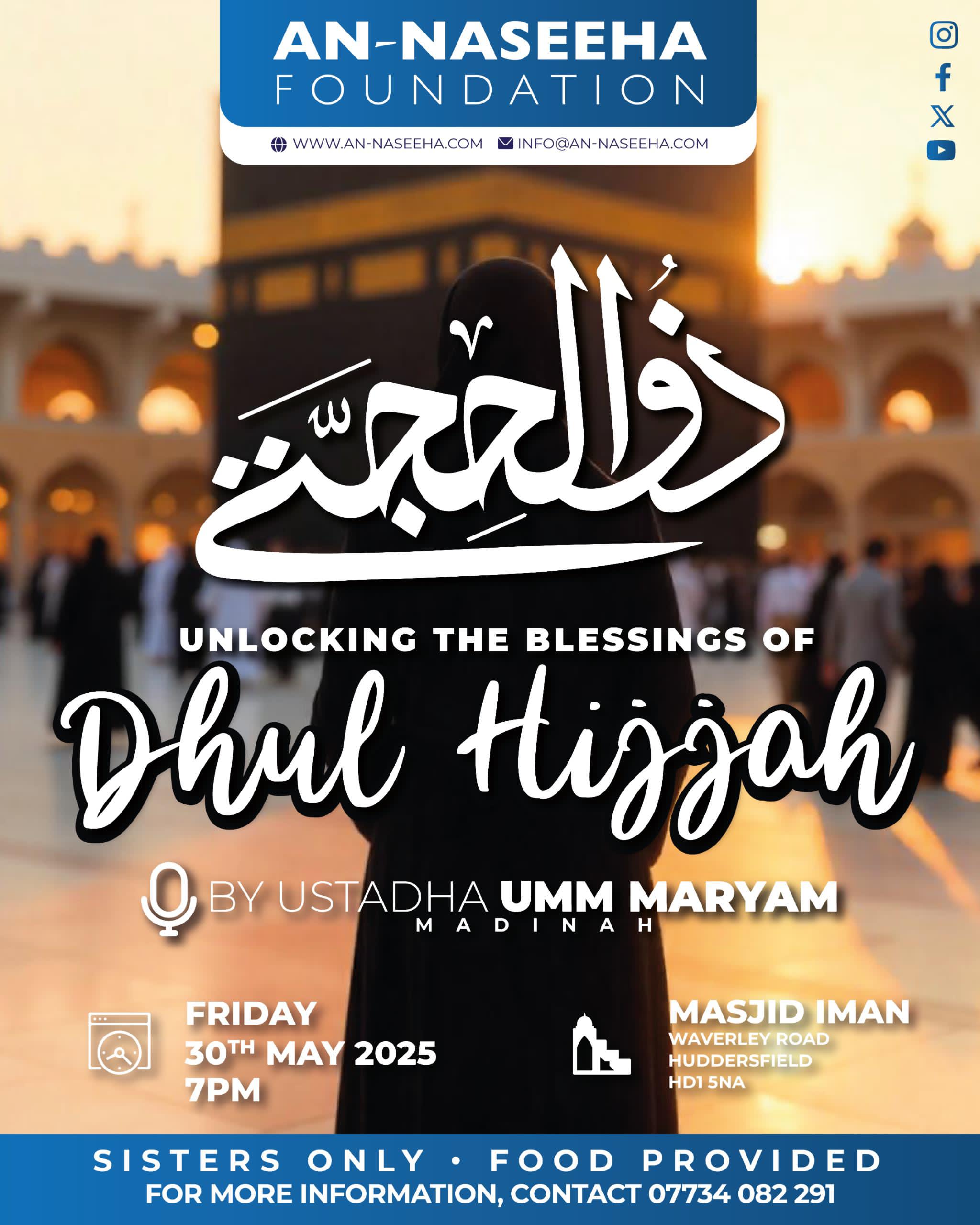 Masjid Iman Waverley Road, Huddersfield, United Kingdom🌟 Join Us for an Enlightening Lecture Series! 🌟 Discover the timeless lessons of Surah Al-Hujurat in The Believer's Mirror: Reflections from Surah Al-Hujurat with Ustadh Umar Muqaddam. Guardians of Etiquette: Divine Lessons of Respect & Communication 📅 Date: Saturday, 1st February 2025 🕖 Time: 7:15 PM 📍 Venue: Masjid Iman, Waverley […]